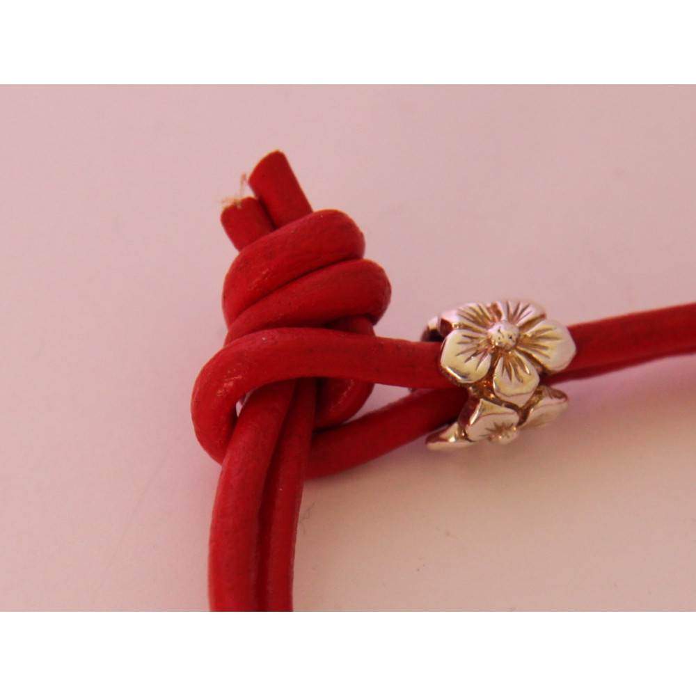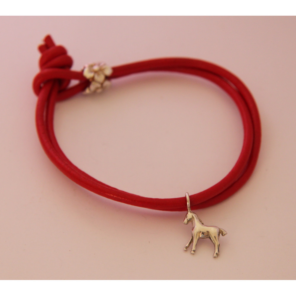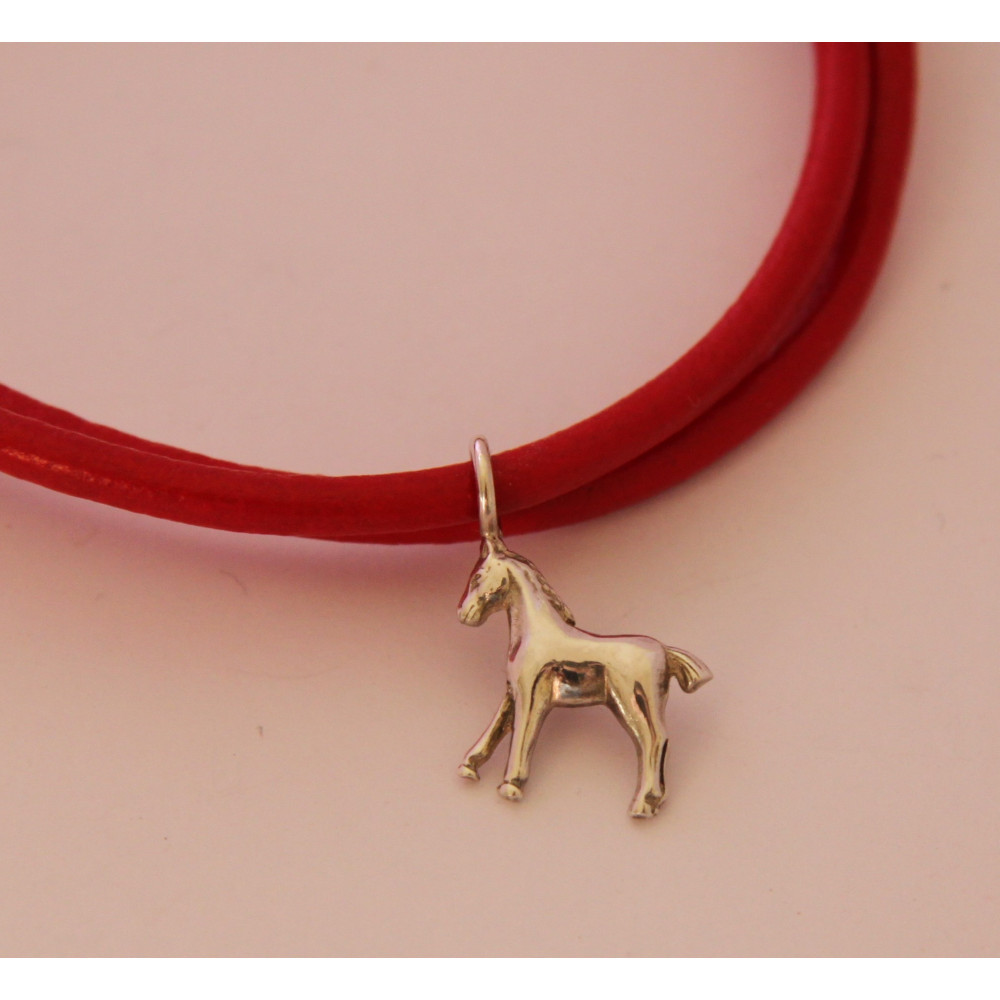 náramek červená kůže s stříbrným koníkem